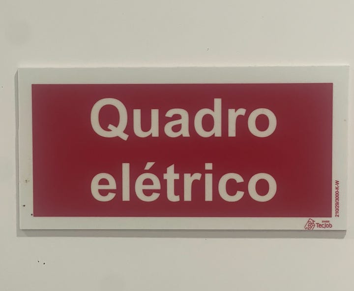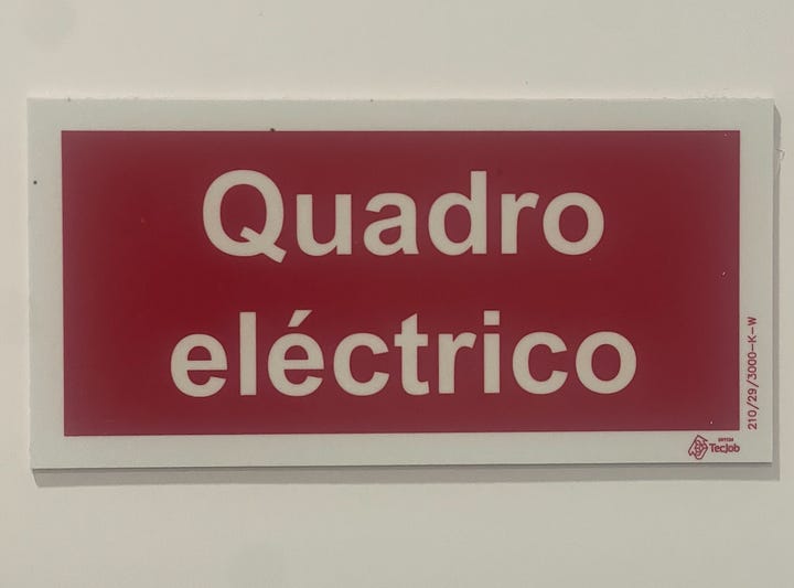 In Brazil I can’t recall the last time I saw something written with the old orthography, but I do see it occasionally in Portugal. Of course, only a lusophilic nerd like me would notice such things! I took pictures of these two electrical panels in a newly-built supermarket in our town—right next to each other: